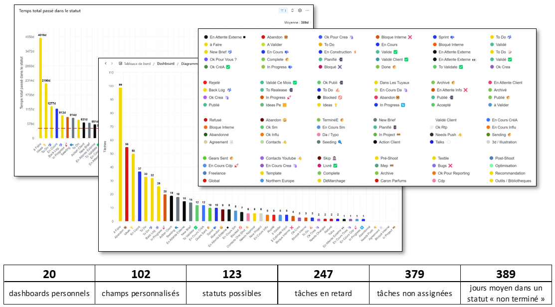 - Rationalisation proposée : nettoyage des statuts et champs inutiles, clarification des assignations, simplification des dashboards.