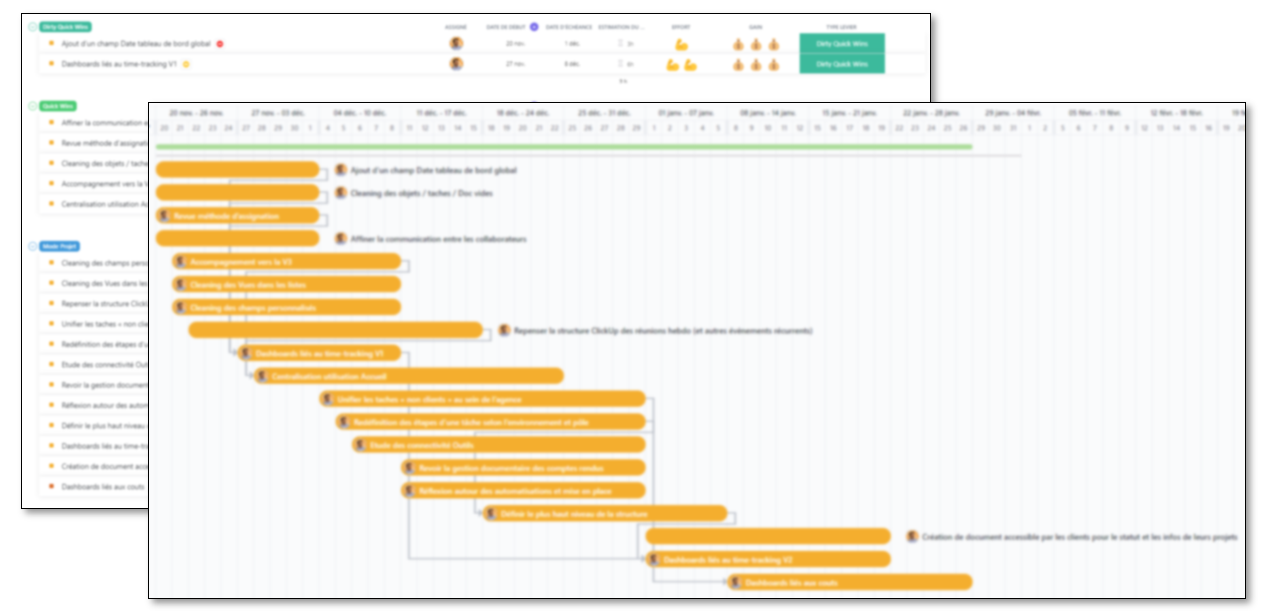 - Montée en compétence des équipes sur ClickUp